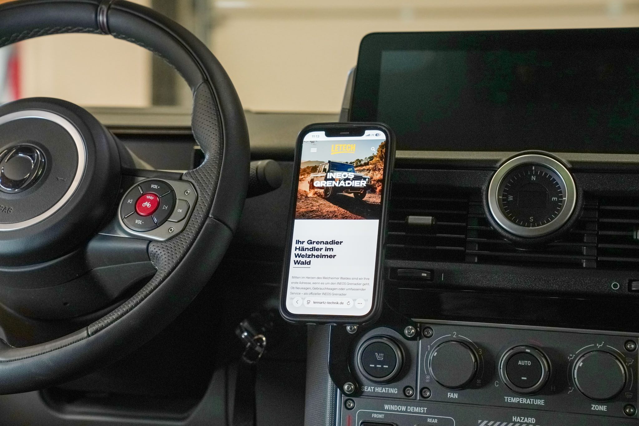 The LETECH phone mount for the INEOS Grenadier offers a convenient way to securely mount your phone while driving.