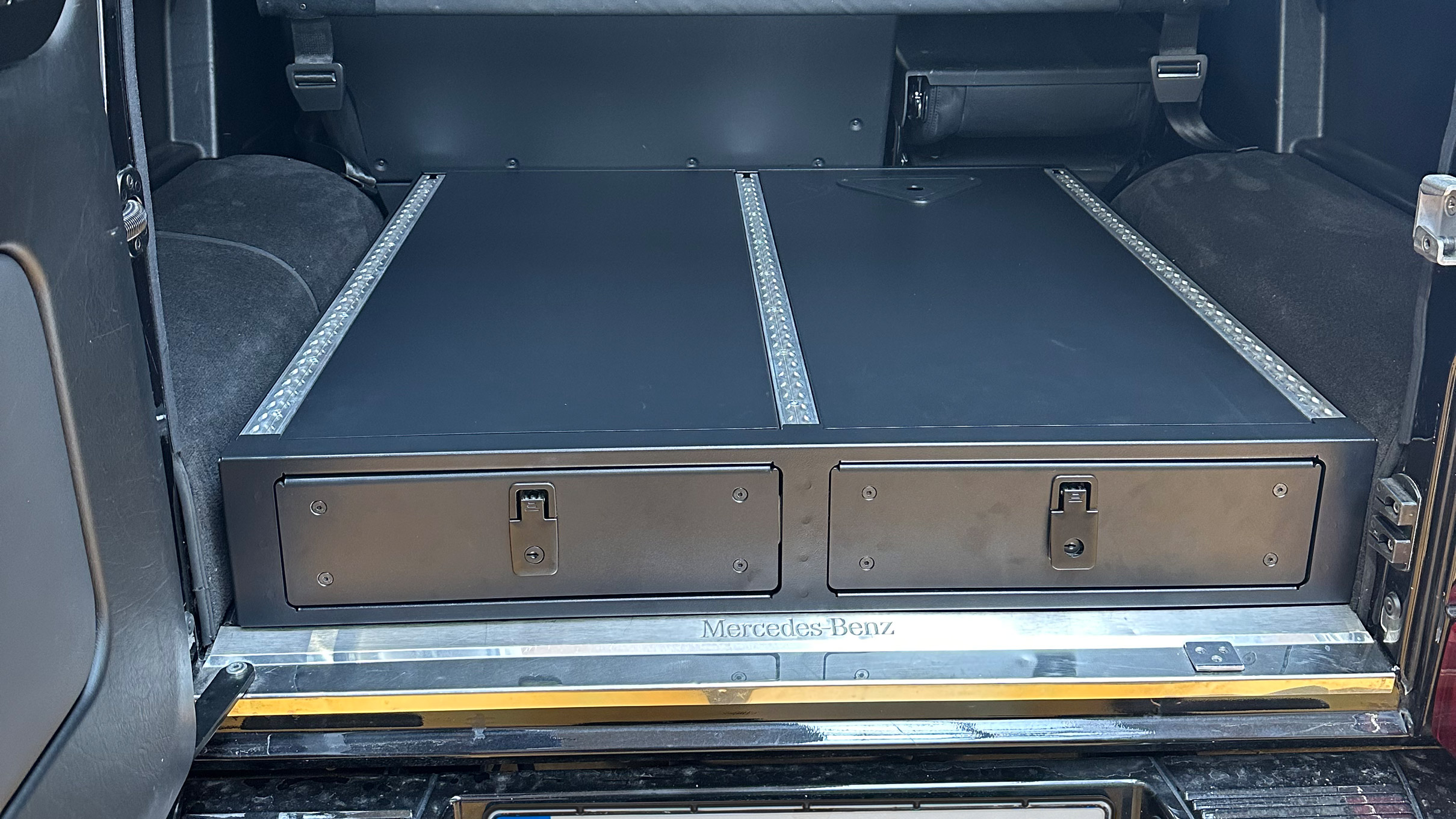 Die LETECH Staubox mit durchgehenden Schubladen schafft Ordnung im Fahrzeug und bietet großzügigen Platz für Ausstattungen wie Bergeausrüstung, Hundeutensilien sowie Sport- und Jagdausrüstung. Die Schubladen laufen auf belastbaren Auszügen und verriegeln sicher im geschlossenen Zustand, was zusätzliche Sicherheit bietet. Dank der rutschfesten Oberfläche mit eingelassenen Airline-Schienen lässt sich sperrige Ladung zuverlässig fixieren. Der Korpus aus Stahlblech ist mit einer KTL- und Pulverbeschichtung versehen, die für eine hohe Korrosionsbeständigkeit sorgt. Zusätzlich lässt sich die Staubox problemlos mit seitlichen Stauboxen kombinieren, um noch mehr Stauraum zu schaffen.