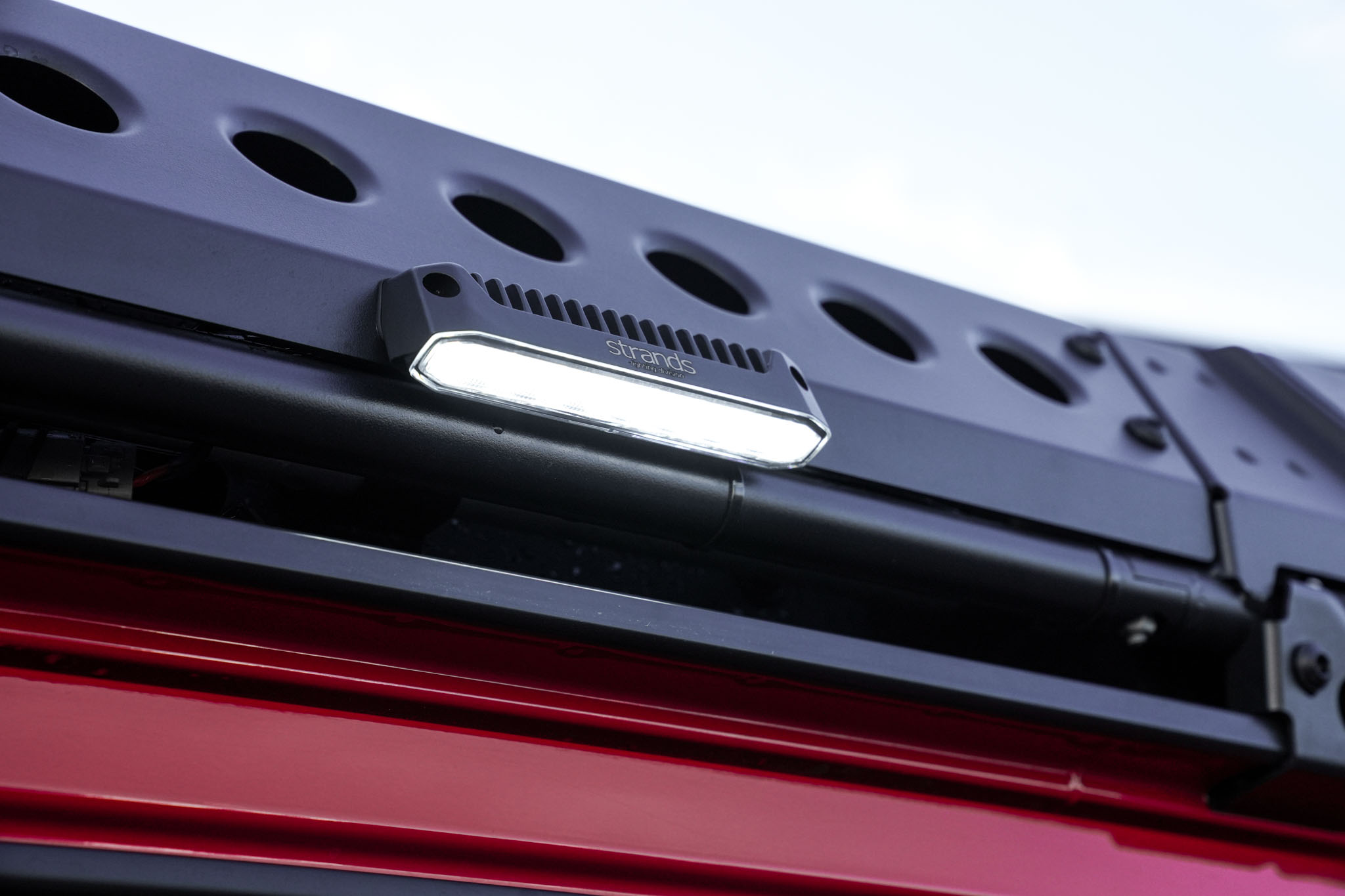 Die Firefly 30 W Leuchte von Strands sorgt für zusätzliche, leistungsstarke Beleuchtung. Passend für die Seitenbleche des Grenadier Dachträgers.