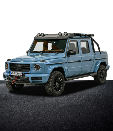 Der LENNSON C Pick-Up ist ein Sondermodell auf Basis der Mercedes-Benz G-Klasse. Die serienmäßige G-Klasse wird zu einem funktionalen Pickup mit großzügiger Ladefläche. Der Fahrzeugrahmen wird um 500 mm verlängert, wodurch sich die Gesamtlänge auf 5.375 mm erhöht und der Radstand 3.390 mm beträgt. Das Ergebnis: deutlich mehr Ladefläche, ideal für Handwerk, Freizeit oder Offroad-Einsätze.
